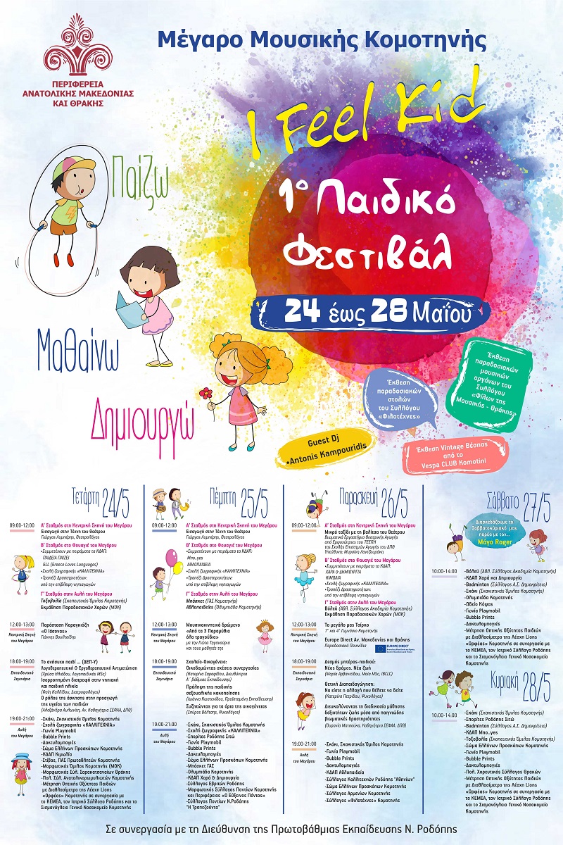 1o Παιδικό Φεστιβάλ «Παίζω, Μαθαίνω, Δημιουργώ» διοργανώνει η Περιφέρεια Ανατολικής Μακεδονίας και Θράκης στο Μέγαρο Μουσικής Κομοτηνής, από την Τετάρτη 24 Μαΐου έως και την Κυριακή 28 Μαΐου2023
