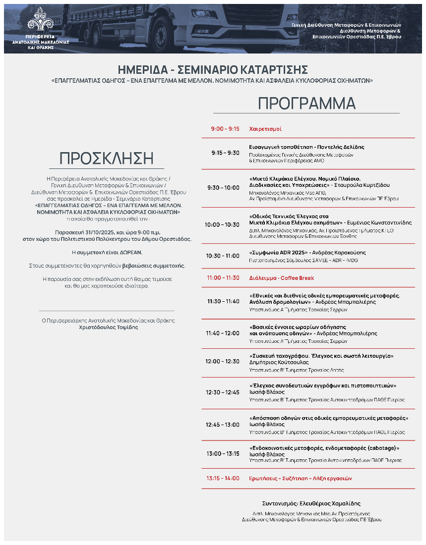 Οργάνωση: Διεύθυνση Μεταφορών & Επικοινωνιών Ορεστιάδας ΠΕ Έβρου