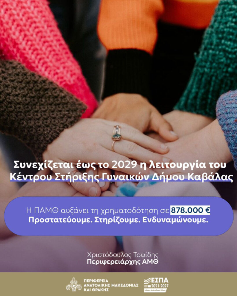 Με ευρωπαϊκούς πόρους της Περιφέρειας Ανατολικής Μακεδονίας και Θράκης διασφαλίζεται η συνέχιση λειτουργίας του Κέντρου Συμβουλευτικής Υποστήριξης Γυναικών Θυμάτων Βίας…