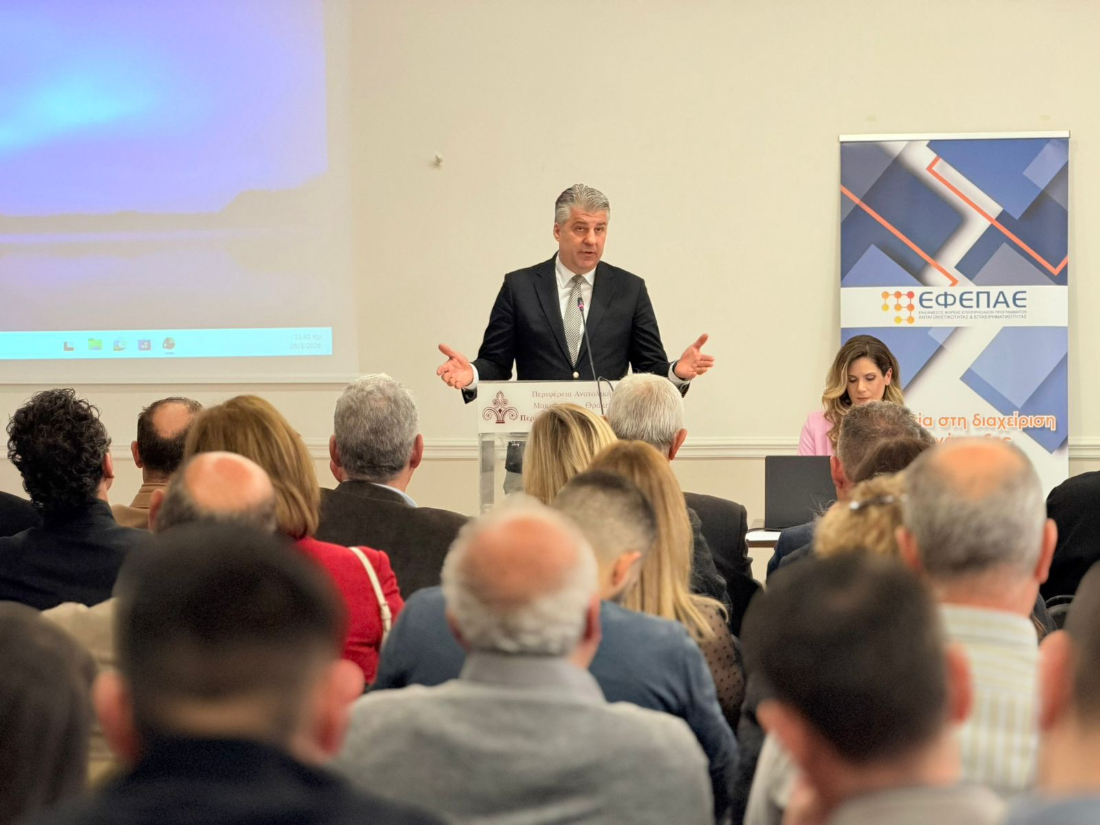 Ο Περιφερειάρχης κ. Χριστόδουλος Τοψίδης καλωσόρισε τους παρευρισκόμενους, επισημαίνοντας ότι η εκδήλωση αποτελεί έναν ουσιαστικό σταθμό αποτίμησης και στρατηγικού σχεδιασμού για την επόμενη ημέρα της επιχειρηματικότητας στην Περιφέρεια.