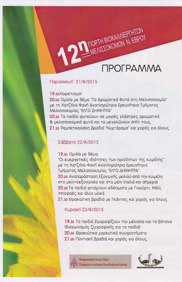 Πρόγραμμα και πρόσκληση για την 12η γιορτή βιοκαλλιεργητών και μελισσοκόμων.